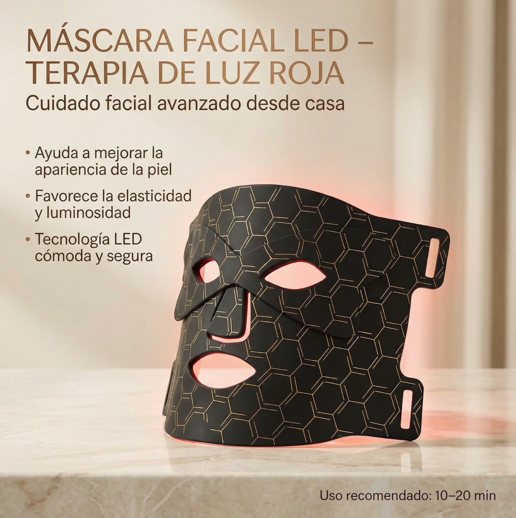Logra una piel espectacular desde la comodidad de tu hogar con tecnología LED avanzada y luz infrarroja. Esta máscara es tu aliada premium para mantener un rostro sano, joven y resolver problemas relacionados con el envejecimiento.